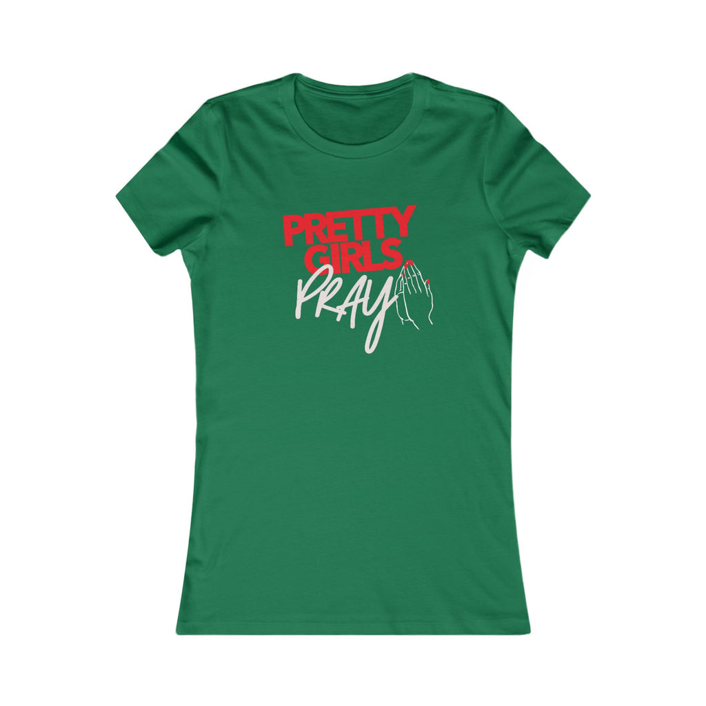 Pretty Girls Pray Red & White Women’s Fitted Faith Tee